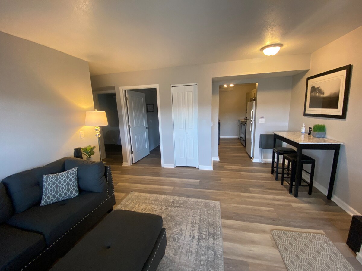 ✨ Comfy ground-level unit with reserved parking just steps from the door. No stairs and easy key code entry for a stress-free arrival. Each bedroom features a queen-size bed and TV, perfect for relaxing and recharging. Stocked kitchen with washer and dryer, Quiet, clean, and comfortable space ideal for business or leisure travel. Enjoy the pergola area for morning coffee or evening drinks. Fast WiFi and smart TVs throughout. Non-smoking unit. Small dogs up to 20 lbs allowed with pet fee No cats