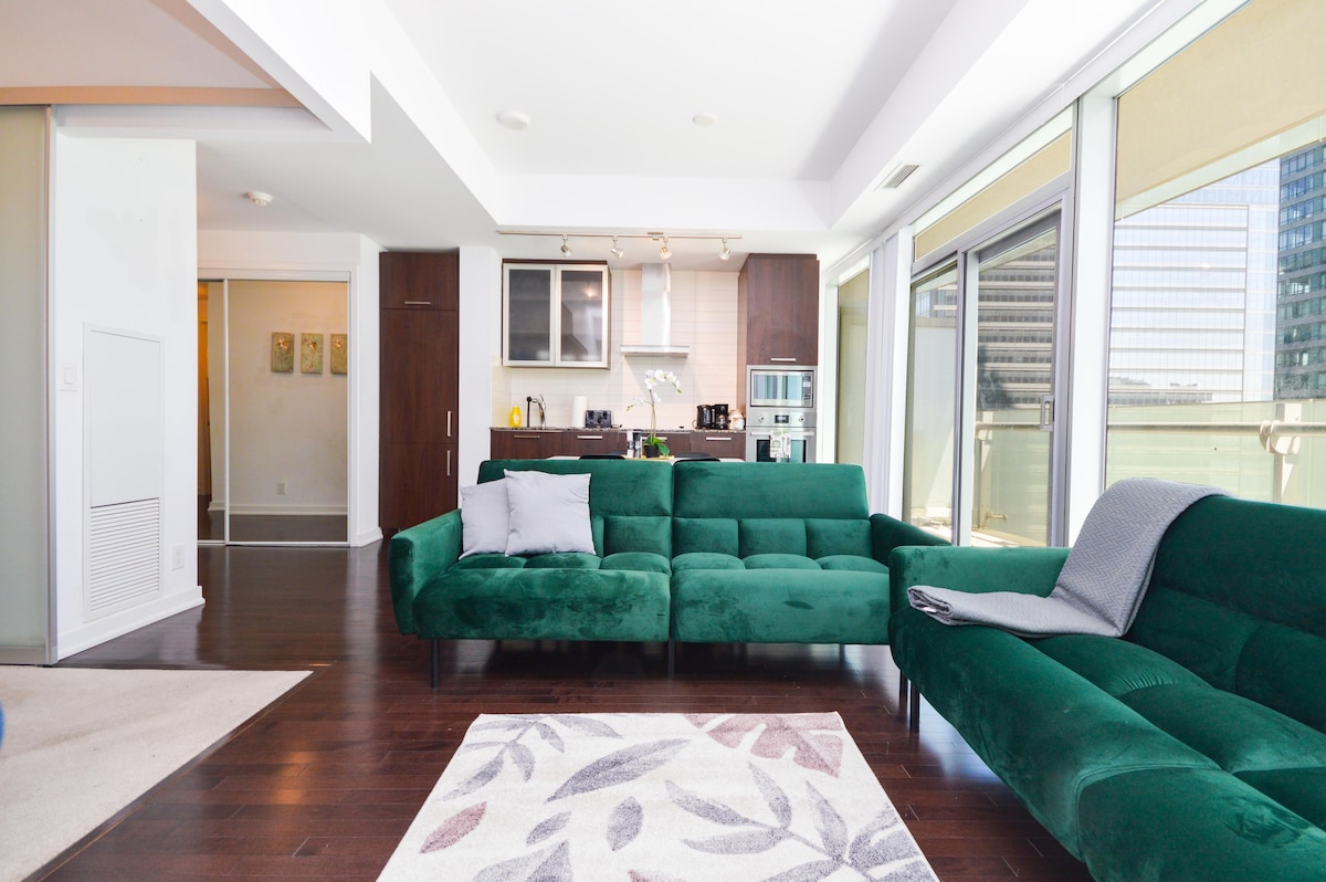 Enjoy a memorable stay at this unique condo located in the heart of Liberty Village. Just steps from downtown, Toronto’s World Cup Stadium, & Budweiser Stage, you’re never far from the action. With beautiful unobstructed park and city views, you can take it all in while you enjoy your little slice of paradise. The condo is designed with warmth, character, and meaning to feel as welcoming and comfortable as possible. You’ll instantly feel at home here. Thank you for choosing Casa di Leo!