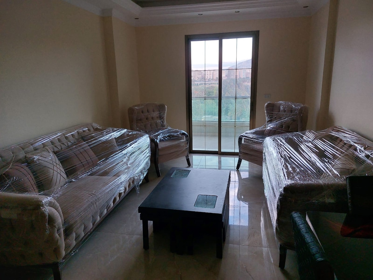 Brand new apartment located in a Villa - strategic location a few minutes from Tripoli. Enjoy your morning coffee on the balcony with a breathtaking view of the sea, city and mountains. The area is located in a peaceful location away from all the city noise and around nature. There is 24/7 electricity up to 15Amp, hot water and internet.