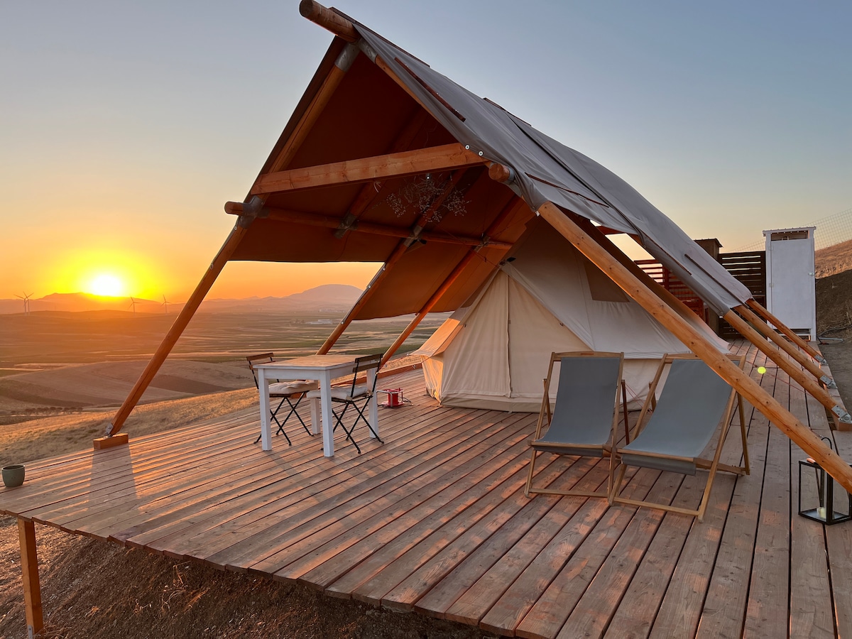 Besuchen Sie das erste umweltfreundliche Glamping Paradise Retreat in Sizilien, wo Sie Ihren Urlaub in einem exklusiven Glamping Zelt mit privater Terrasse und Garten verbringen können – genießen Sie den Meerblick zwischen Olivenhainen, Zitrusbäumen und Palmen und fantastische Sonnenuntergänge. Entspannen Sie sich an einem magischen Ort, der einen 1000 m² großen Garten umfasst, umgeben von Olivenhainen und Weinbergen, aber auch in der Nähe des Meeres.