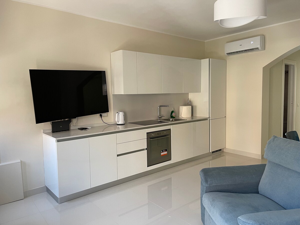 Modern, brand-new apartment recently renovated and nicely furnished, perfect for your stay in Tropea. Located in a central area, everything is within walking distance, so no car is needed. Just 150 meters from the historic center and a 10-minute walk to the beach. The apartment includes a bedroom, bathroom, laundry area, and a spacious open-plan kitchen with a cozy sofa corner. Enjoy sea and historic center views from the window. City tax not included: €1.50 per person per day.