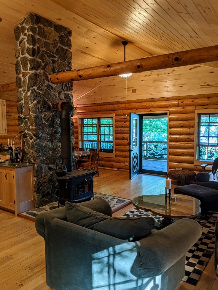 Otter House is a beautifully appointed log cabin in the trees overlooking Otter Lake. It is comfortably furnished with a well equipped kitchen. The lakefront has a small beach, 3 kayaks, a canoe, hammocks and a fire pit. Otter Lake is a tranquil spot with great fishing and very little boat traffic. Canoe up the Otter River or Kayak down to the dam. You will see eagles, beavers, turtles, loons, geese and if you're lucky an otter. There is a parking pad for your RV or trailer.