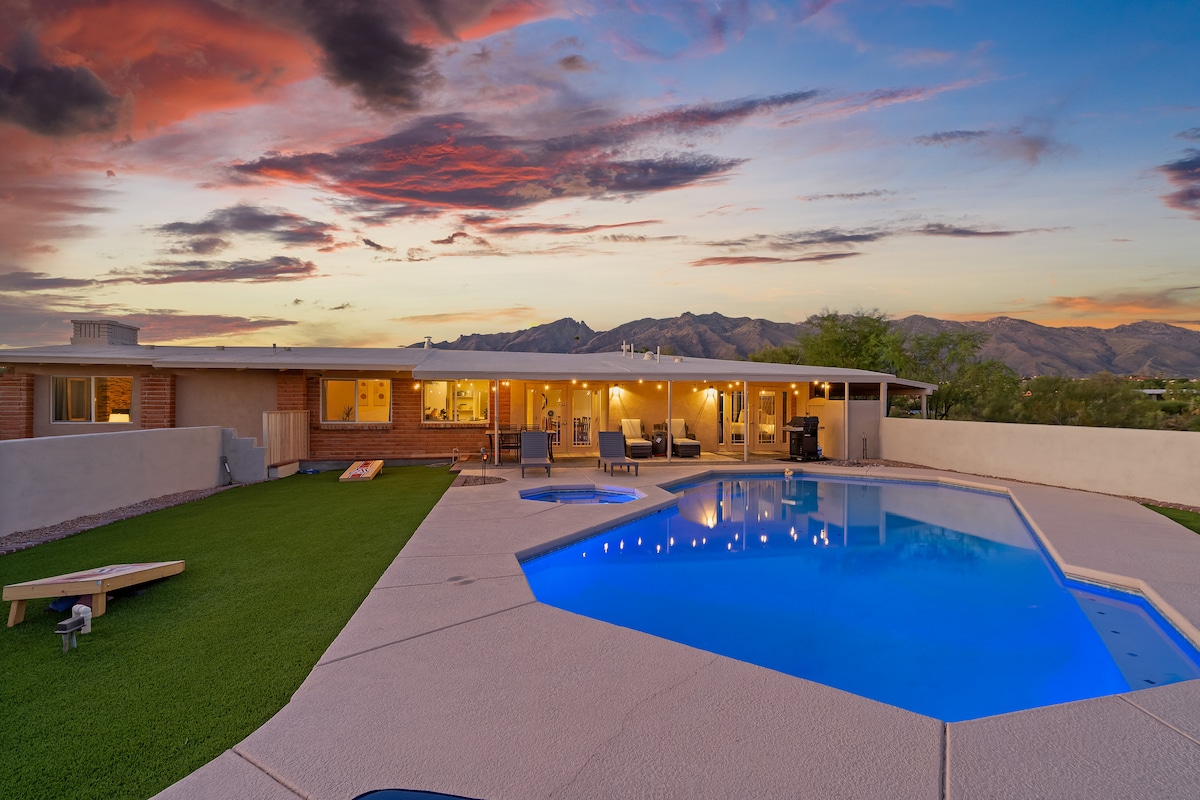 Welcome to a refined desert retreat with sweeping views, a private pool, and a full game room—ideal for elevated group stays. The spacious layout offers multiple living areas and seamless indoor-outdoor flow, perfect for gathering without feeling crowded. Enjoy mornings with desert views, sun-filled afternoons by the pool, and relaxed evenings in the game room. Designed for comfort, connection, and memorable Tucson getaways.