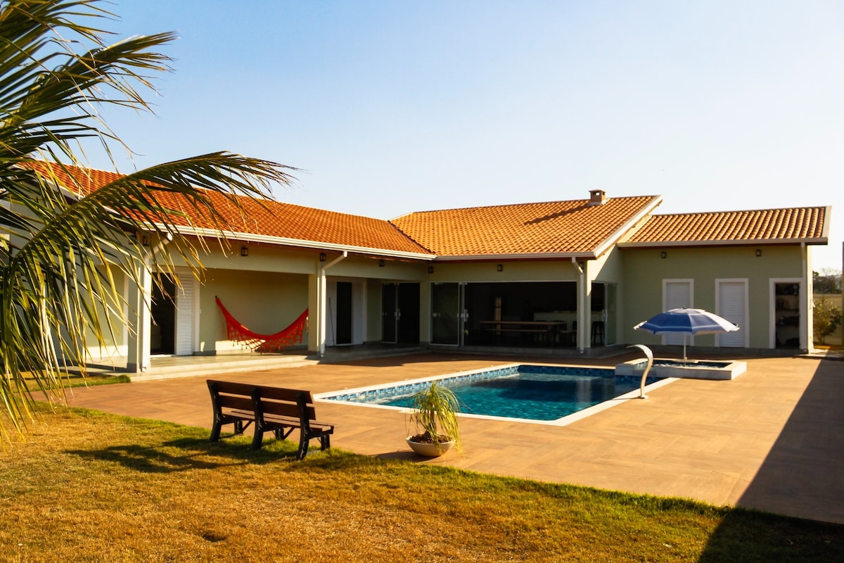 Welcome to Chácara Recanto Tuiuti! You will enjoy a full space, including 5 cozy cottages with en-suites PETS are very welcome! Saltwater and heated pool. Game room with pool table; ping pong and foosball Bed and bath linens included Full kitchen Barbeque 128Mbps Wi-Fi for home office Parking for 7 cars inside the property 5 en-suites with balconies, smart TV, minibar and ceiling fan Playground Newsstand The farm accommodates up to 22 people