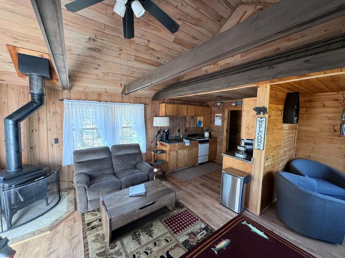 CHARMING COTTAGE on beautiful Richardson Pond. Enjoy the privacy of having 3.5 acres and private water frontage all to yourself. Amazing fly fishing, hunting, outdoor activities await. Relax and enjoy this beautiful cozy cabin with full amenities! Full bath and 2 bedrooms in an open concept layout allows for roominess and space. Included with rental a canoe and kayak.