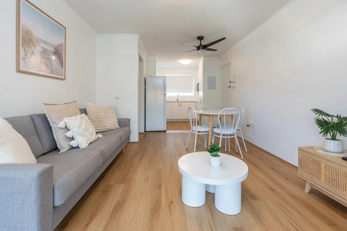 Directly across from the access path to stunning Pebbly Beach and lookout! A 2 minute walk to Forster Main Beach, ocean pool and waterfront dining. Full Linen Provided. Fully renovated, Ocean Crest is a spacious 2-bedroom unit in the most sought-after location in Forster at the quiet end of the street but only a stone's throw to the centre of town. Easily park directly out the front and walk everywhere you need to go or chill out after a day at the beach on the breezy balcony.