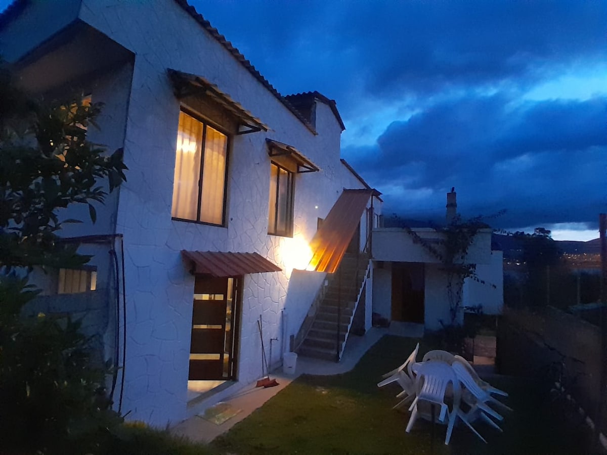 Spacious and elegant apartment ideal for individuals and families looking for comfort. Close to all shops and financial center. A must-see on the way to snowy Cayambe. 45 minutes from Quito's Mariscal Sucre Airport. 25 minutes from Otavalo and surrounded by large flower companies. -3 bedrooms -Three bathrooms - Kitchen - Dining room - Living room with 65-inch Smart TV (Netflix) -Bar -2 balconies -An indoor terrace