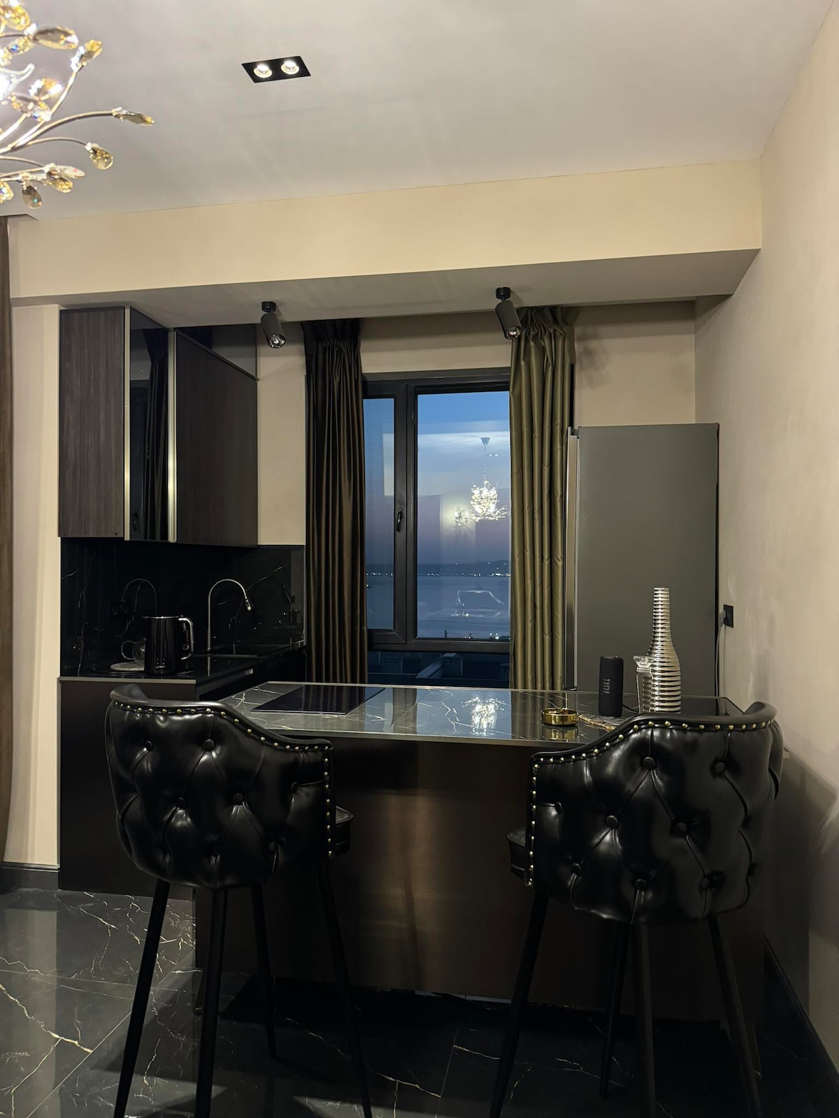 This unique apartment has its own style and atmosphere. Stunning views of the sea, forest park and city from panoramic windows..Mirrors reflecting the bed area and sea view. A closed residential complex in a quiet area of the capital. On the territory there are supermarkets, a premium beauty salon, the city's best bakery AZZA, a dry cleaner, and pharmacies. A bus stop is 100 meters from the complex, and the metro is within a 3 km radius. Both city center and seaside are within a short drive.