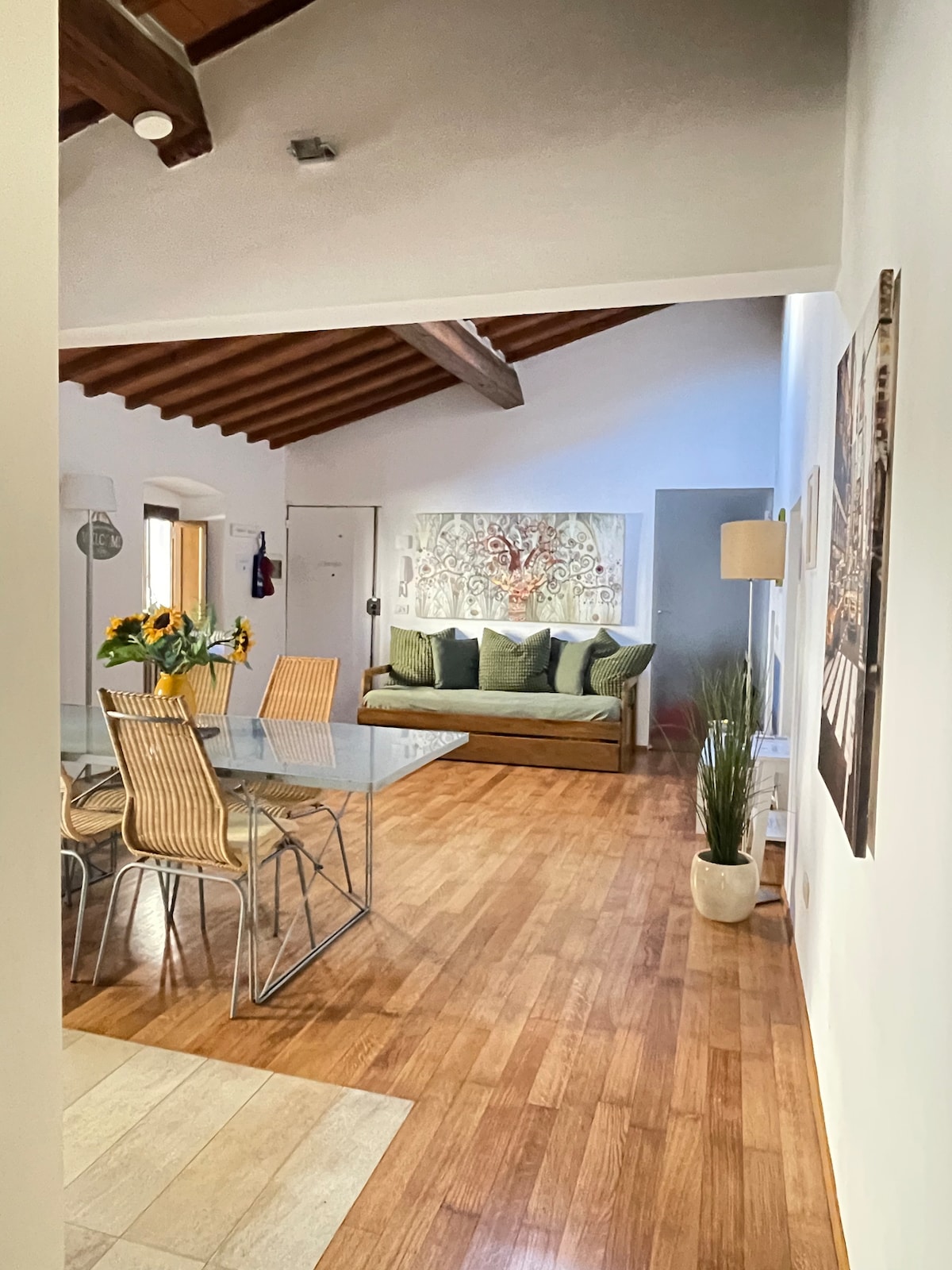 The apartment is a bright and quiet two-room apartment just a few minutes from the lively San Frediano district. Ideal for 2 people, but also for lone travelers or on business trips. Located on the third floor, it enjoys a splendid view of the left bank of the Arno river. Featuring a balcony and an equipped kitchen and located in an area full of services, a 15-minute walk from the historic center. For those arriving by car it is possible to park in the area on the blue lines (for a fee).