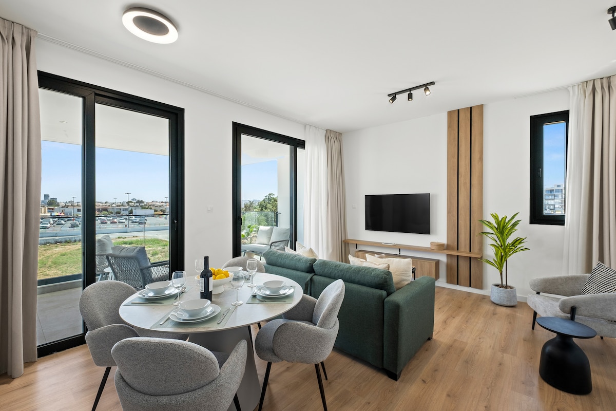 Welcome to our Chic & Modern 1-Bedroom Apartment! This brand-new, tastefully designed apartment offers a cozy and elegant home away from home in a quiet neighborhood, just minutes drive from downtown Larnaca and within walking distance to the beach. Enjoy the comfort of a stylish living area and unwind on the private balcony with lovely side views of the sea - perfect for a morning coffee or a relaxing evening. Ideal for both short getaways and extended stays.