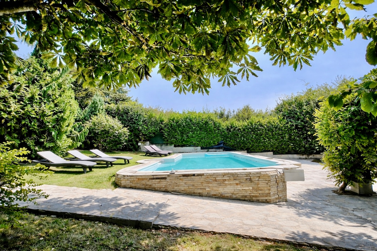 Private villa rented exclusively to one group, offering complete privacy and comfort throughout the stay. The property includes a main villa and two independent studio apartments with private entrances, set on a fully fenced estate of over 1,200 m², ensuring generous outdoor space. It features open views toward Mount Avala, a private pool, landscaped garden, summer kitchen, traditional tavern, multiple outdoor living and dining areas, ambient evening lighting, and private parking.