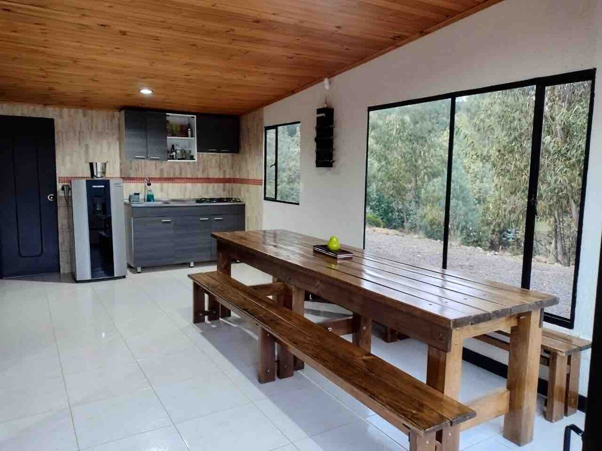 You'll love our place. On-site there are trails, Andean forest, and water sources. You can walk, meditate, create, cultivate the soul and body with the healthiest exercise in the world, be immersed in nature. Casa de Pájaros is cozy, with good scenery and security. You have a magnificent equipped kitchen and you can use all the outdoor areas. It is a perfect mountain location for everyone, for long or short stays without restrictions on water service.
