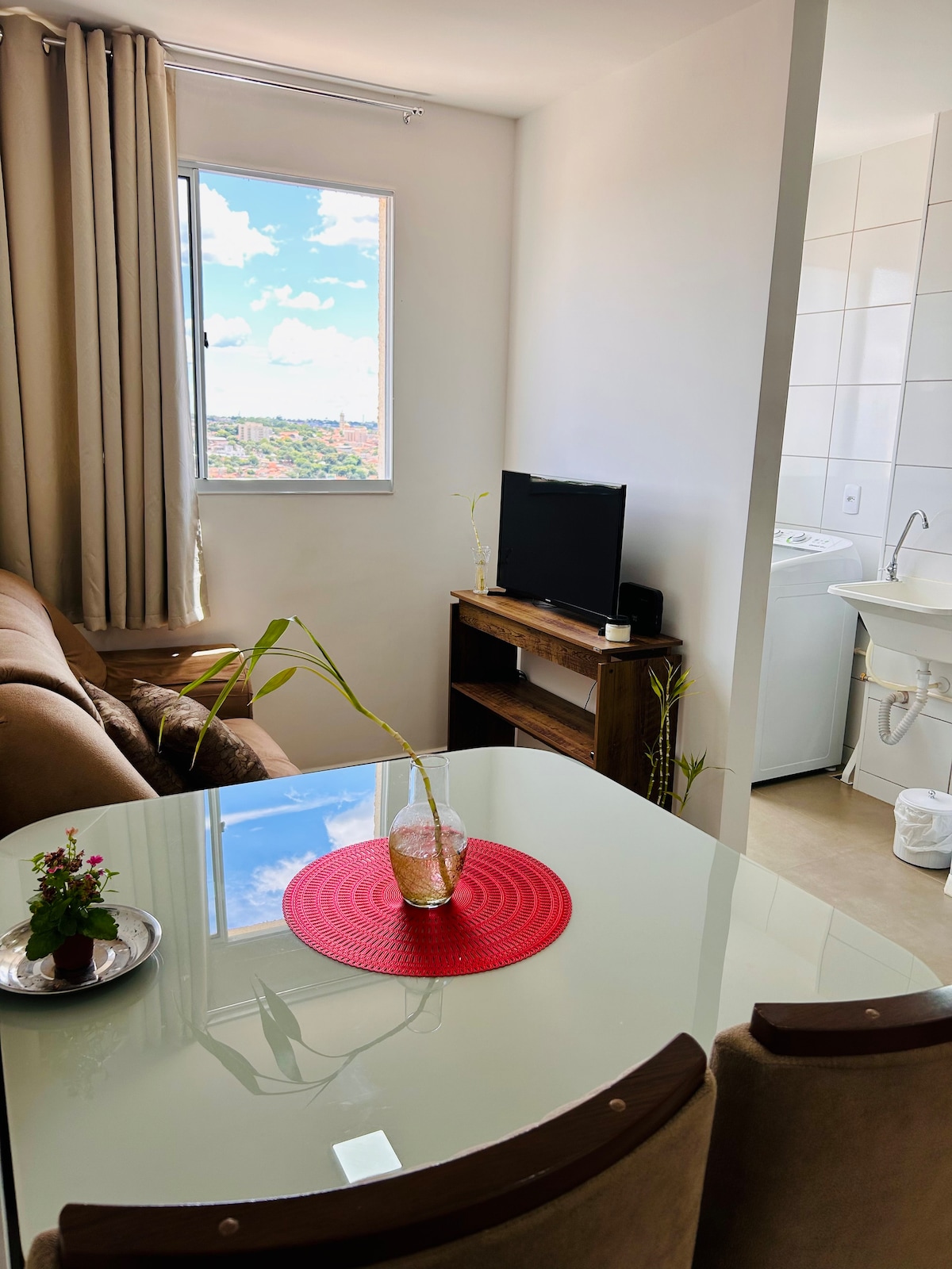 Modern and comfortable apartment, 1 covered parking space, well located in the Olinda neighborhood, in the best region of Uberaba! It is 700 meters from UNIUBE and the airport. Surrounded by bakeries, restaurants and supermarkets. Easy to access location! The apartment has Wi-Fi, air conditioning, microwave and washing machine, coffee maker and toaster, etc. Ideal for those looking for practicality and comfort. ✅ Bed and bath linens included 🔑 Key pick-up at any time 👉🏻 Approval within 15 minutes 🚨📞: 34-98406-6871