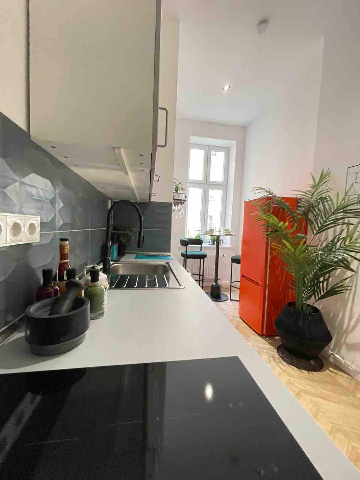 🏠 Charme am Park Unser 120 m² Apartment in der 1. Etage mit Balkon und Parkblick bietet 2 Schlafzimmer mit Doppelbetten, eines zusätzlich mit freistehender Badewanne, das andere mit Schlafcouch. Das großzügige Wohnzimmer mit Bar-Ecke und Balkon lädt zum Entspannen ein. Die Küche ist voll ausgestattet, inkl Geschirrspüler. 📍Lage Nur 2 km vom Alexanderplatz. Direkt am Bötzow-Park mit Cafés, Restaurants und Einkaufsmöglichkeiten in der Nähe. 💡Hausregeln Rauchen verboten Partys verboten