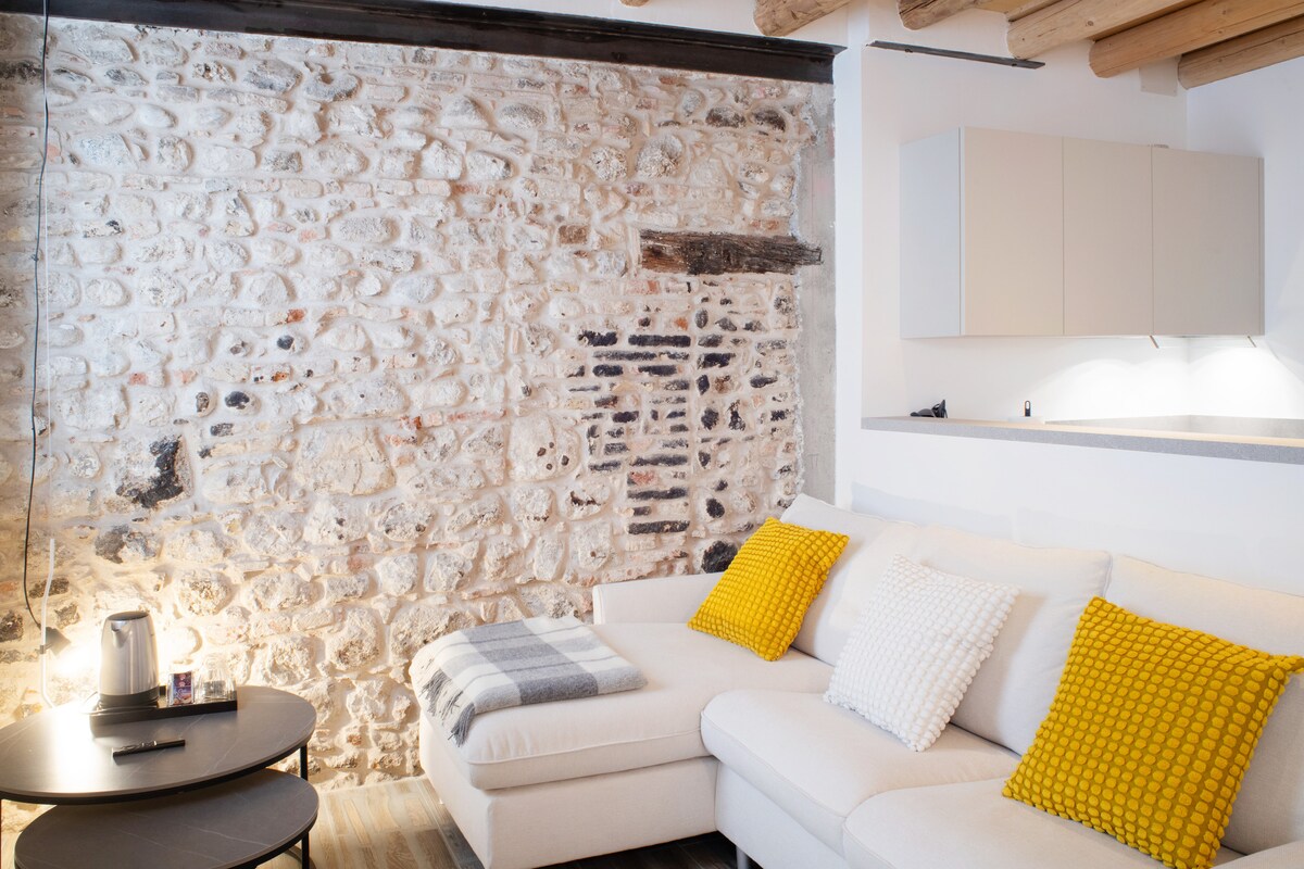 THE STUDIO house in the city center, on the 1st floor of a nice condominium developed horizontally with independent access. Equipped with high and bright ceilings that have allowed a functional, comfortable and cozy furniture, complete with what it takes to make a small apartment a real home. LOCATION A short drive from the old town, hospital and motorway access. A REAL nest for those who, traveling for work and for pleasure, love to feel like home!