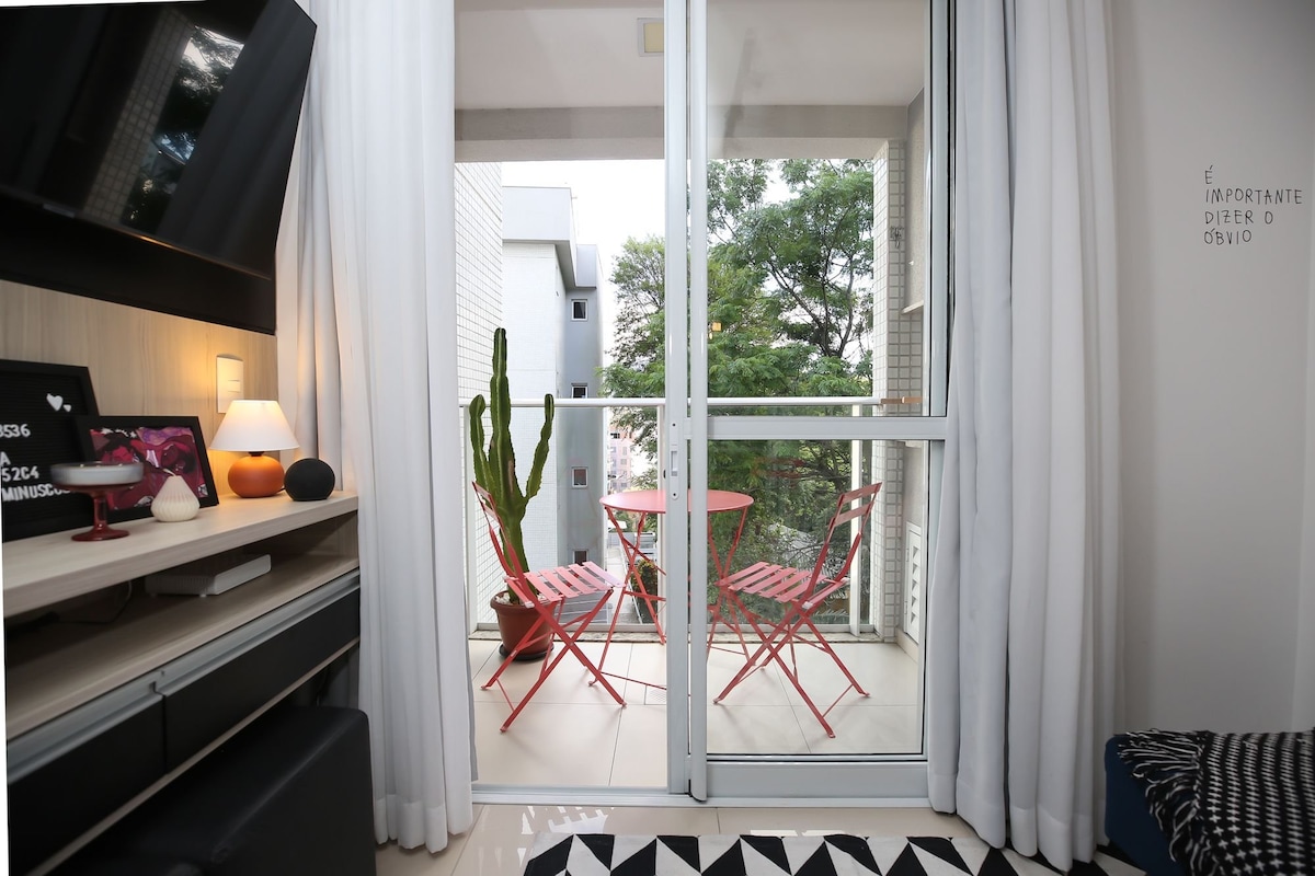 Looking for a cozy checkpoint in the heart of the city? You'll feel at home in this well-planned loft. Located in downtown Florianopolis, it's perfect for someone looking to explore the island or attend to an event nearby. Includes: - Queen bed - Complete gourmet kitchen - Washer and drier - Big table for meals and Home Office - 360 Rotational TV so you can watch from anywhere in the loft - Clean and modern bathroom - Wi-fi - Complete air conditioning