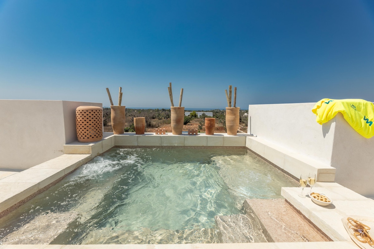 Rural house, pajara, just renovated in the countryside, inside a 10thousand mq olive tree grove with abreath-taking panorama. Nicely furnished,full equipped with air condition, a big outside private pool with hydromassage ( 3.5x11 m) and kitchen area with accessories. The pool is independent, heated all day and night ( 24-28 degrees) and just for the house, the only structure situated in the villa. The wifi is very good also for working inside the house. Only 5km far from famous turist sea-side