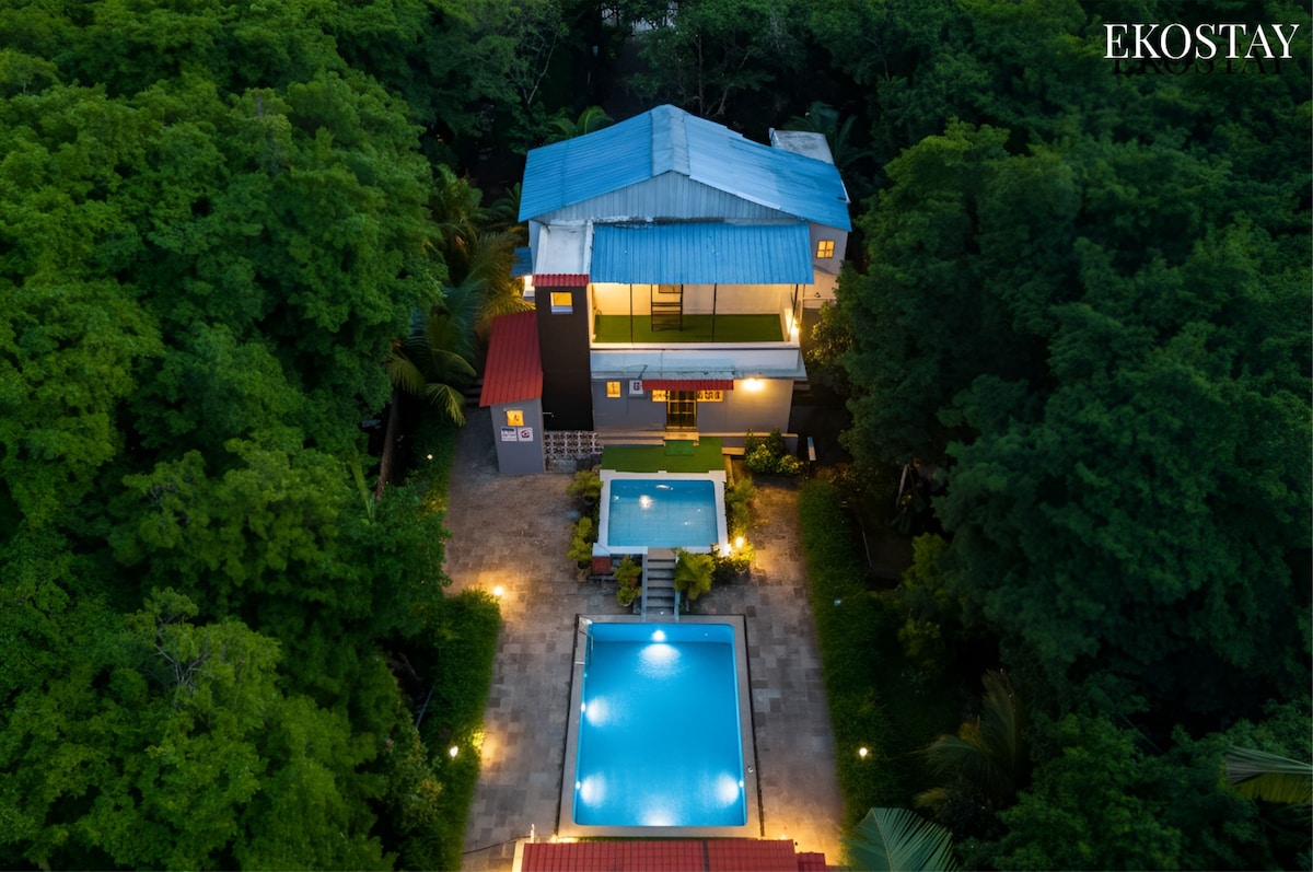 Unplug in our 3BHK Fern Wood Villa! Nestled in lush nature, this tranquil retreat offers a refreshing swimming pool, spacious rooms with ample natural light, and a cozy living area perfect for relaxation and bonding. The well-equipped kitchen allows you to whip up delicious meals, while the calm and isolated atmosphere provides a much-needed escape from city noise. With plenty of outdoor space to connect with nature, this getaway is ideal for families, groups, or solo travelers seeking peace.