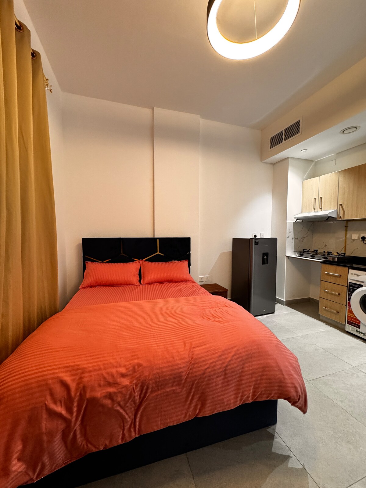 This elegant studio, located in a newly built tower in the heart of the city, offers new and modern furnishings for a comfortable stay. Enjoy the skyline views from the large windows and prepare your favorite meals in the fully equipped kitchen. Security is guaranteed 24/7, allowing you to relax without worries. Just steps away from attractions, restaurants and shopping malls, this studio is the perfect base from which to explore Dubai. Book Now