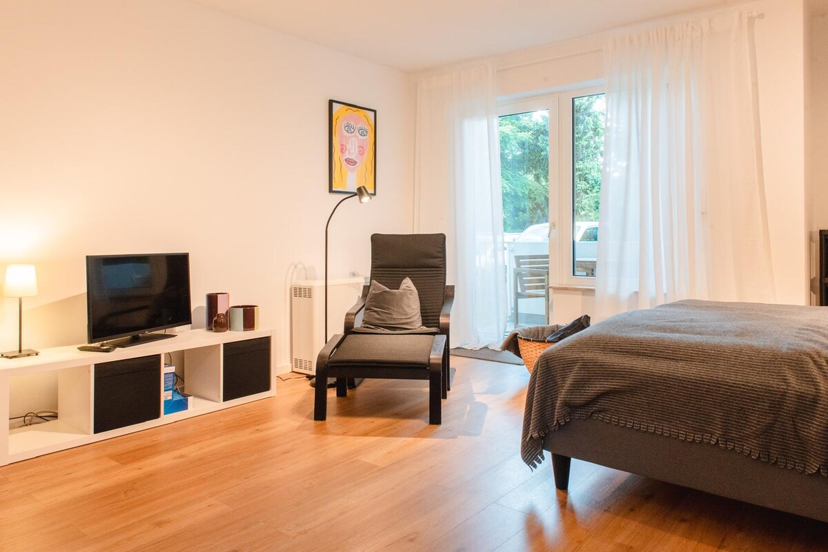 Quiet residential area in a two-family house, very good transport connection to Dortmund Airport, 1.8 km to the S-Bahn towards Dortmund (city center, Signal-Iduna-Park, Westfalenhalle) or direction Unna - city center and train station. Bus connection to the S-Bahn is 50 meters away. Spacious, well-furnished apartment with garden corner right on the field. Rental only to non-smokers, no animals. We offer a nice, cozy home away from home.