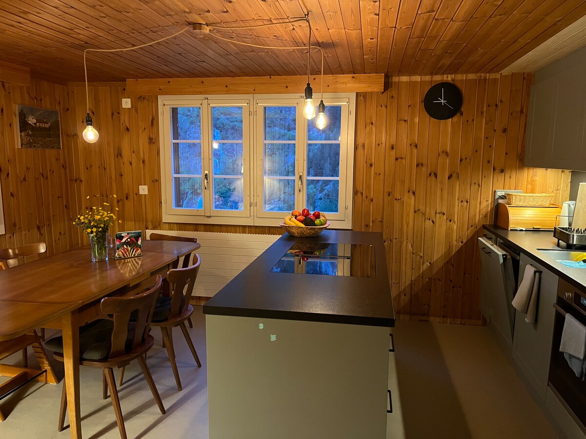 Our Chalet is situated on the sunny side of Engelberg and offers a spectacular 180 degree view of mountains (including Titlis), the valley, the village and the monastery. We just renovated the old wooden Chalet in a Scandinavian Look with lots of love. We hope you appreciate the spacious and well equipped kitchen and all the stylish details of the Chalets as much as we do. We don't have a parking space, but there is a public parking space not far to it. It takes you 5-10minutes to walk there.