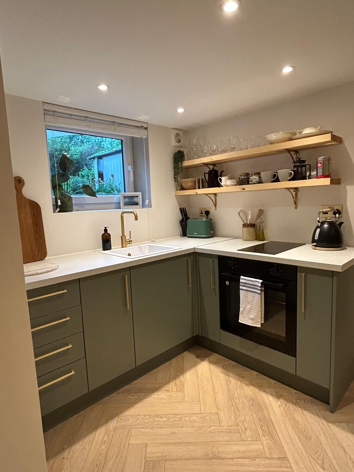 Converted barn with separate access and exclusive use of the entire self-contained space. Private off-road parking with Type 2 Charger for EVs. The bedroom includes a king-size bed and chest of drawers for storage. HD TV in lounge; WiFi (95mbps down); Alexa speakers with smart lights throughout (you can still just use the switches);voice-activated smart heating (again, you can just press the buttons); the fully-fitted kitchen includes kettle, microwave,FF, oven, and a Nespresso coffee machine.