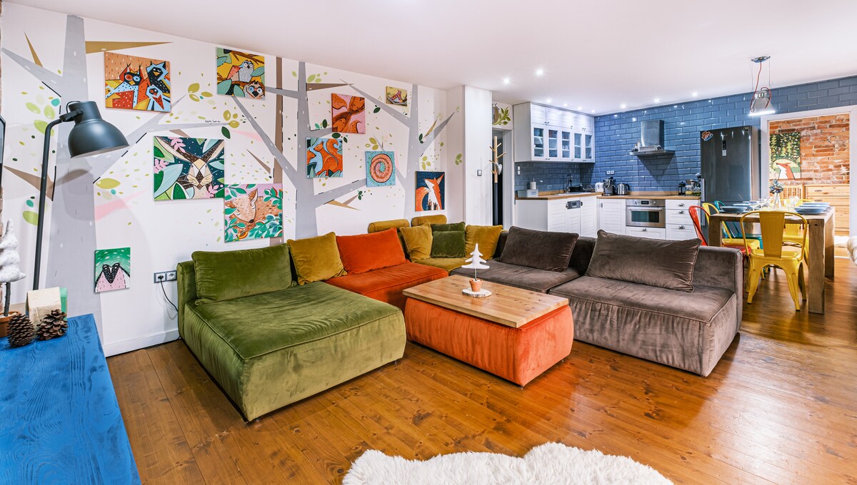 The apartment is stylishly decorated with natural accents, very comfortable, and equipped with all the necessary accessories. Located in a beautiful and quiet part of Bielsko-Biała. Close to the center, 100 m from the Staceńskie Boulevards, where there are three playgrounds for children, an outdoor gym, bicycle paths, a skatepark, a walking area, a great base for mountain trips and for ski lovers. In close proximity, shops, restaurants, cafes.