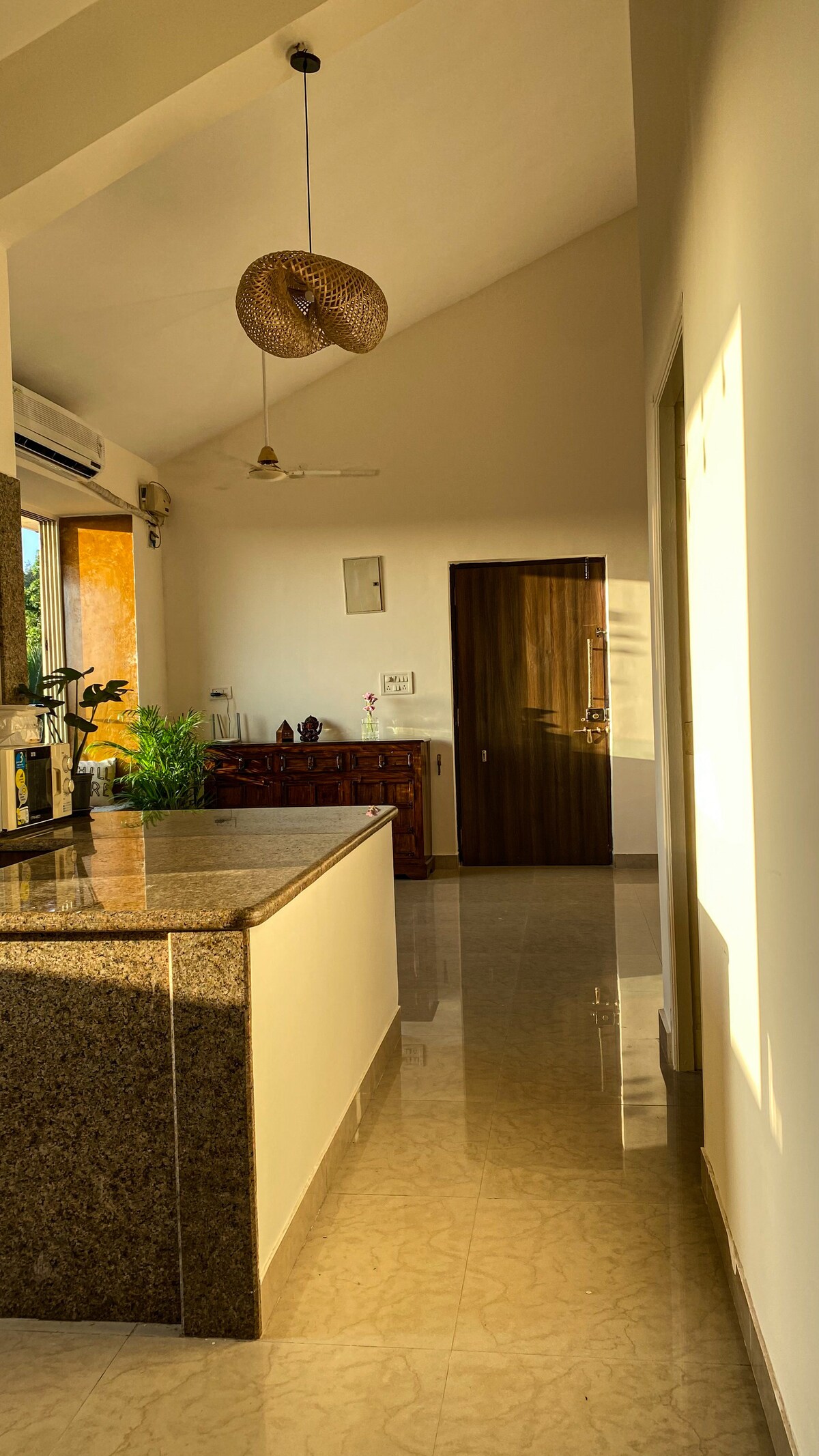 Nestled in the heart of South Goa’s Canacona, this house is designed to have High ceilings, Huge windows , balconies overlooking the valleys to take in the breeze and ample light all along the day. This house is curated with minimal approach while maintaining modern sensibilities. Dappled in Sunshine with it’s breathtaking sunset views followed by the church bell sounds every evening makes for a lovely escape from your busy life.