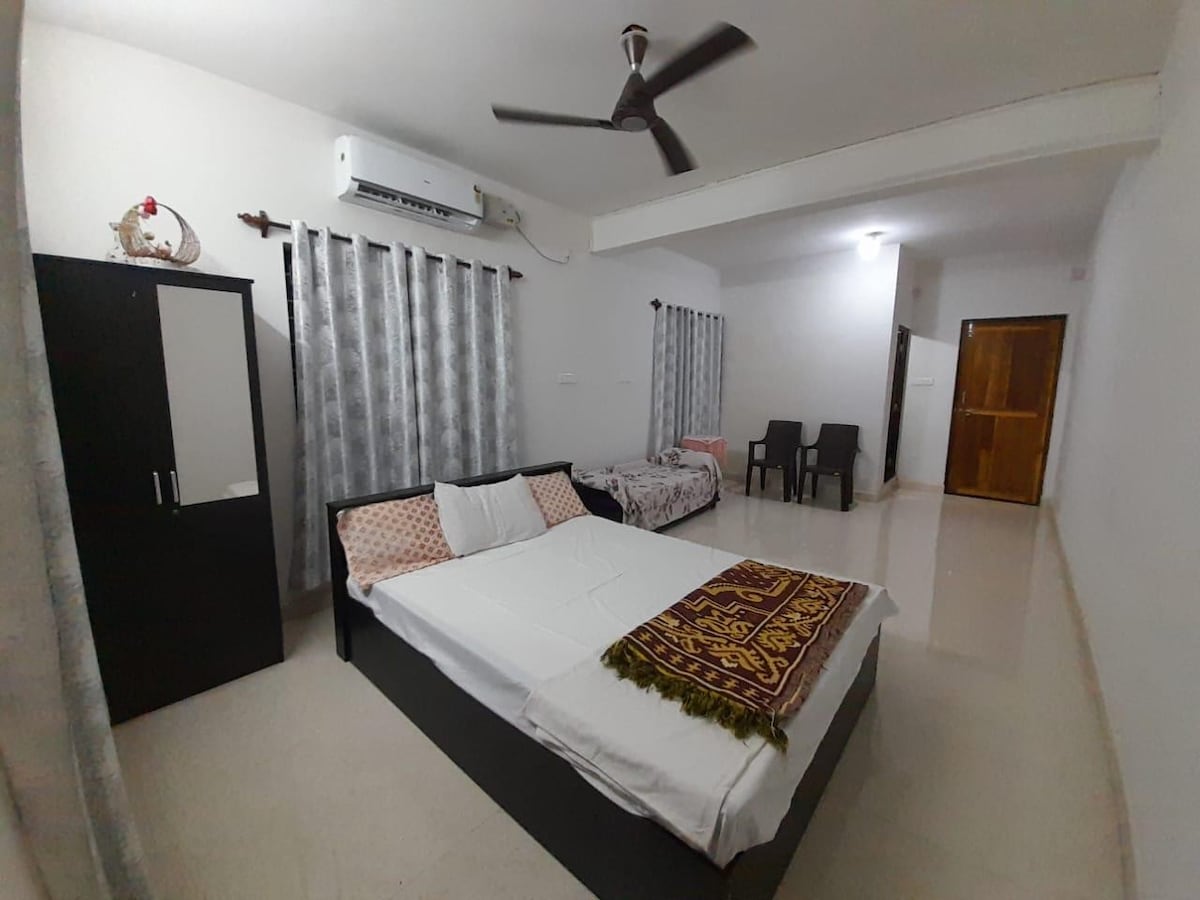This poperty comes on NH 66 Highway. 1km away from Ankola railway station. About 15kms from Gokarna. You can enjoy beaches in Ankola which is very peaceful. Relax with the whole family at this peaceful place to stay. With 3 Nos of A/c rooms with Queen size bed with attached bath room. 1 A/c bed room with shared bath room. 1 non A/c rooms with shared bathrooms available. With free Wifi. With kitchen and Dinning hall and Sitting room with TV. Foods will be delivered as per guest's request