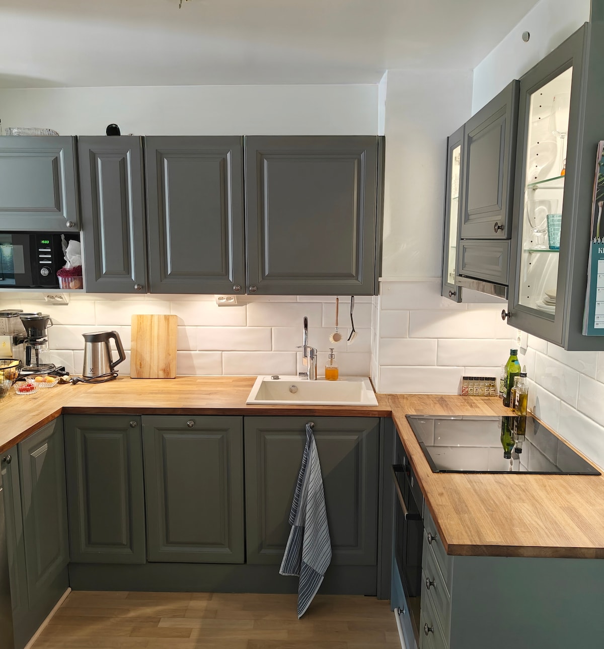 Welcome to our delightful second-floor apartment, nestled with a tranquil forest view. Enjoy the comfort of our king-sized bed, perfect for both brief visits and longer stays. The apartment also includes a compact work desk. We've thoughtfully stocked the apartment with essential food items such as bread, butter, eggs, and more, ensuring a convenient and comfortable experience for all our guests.