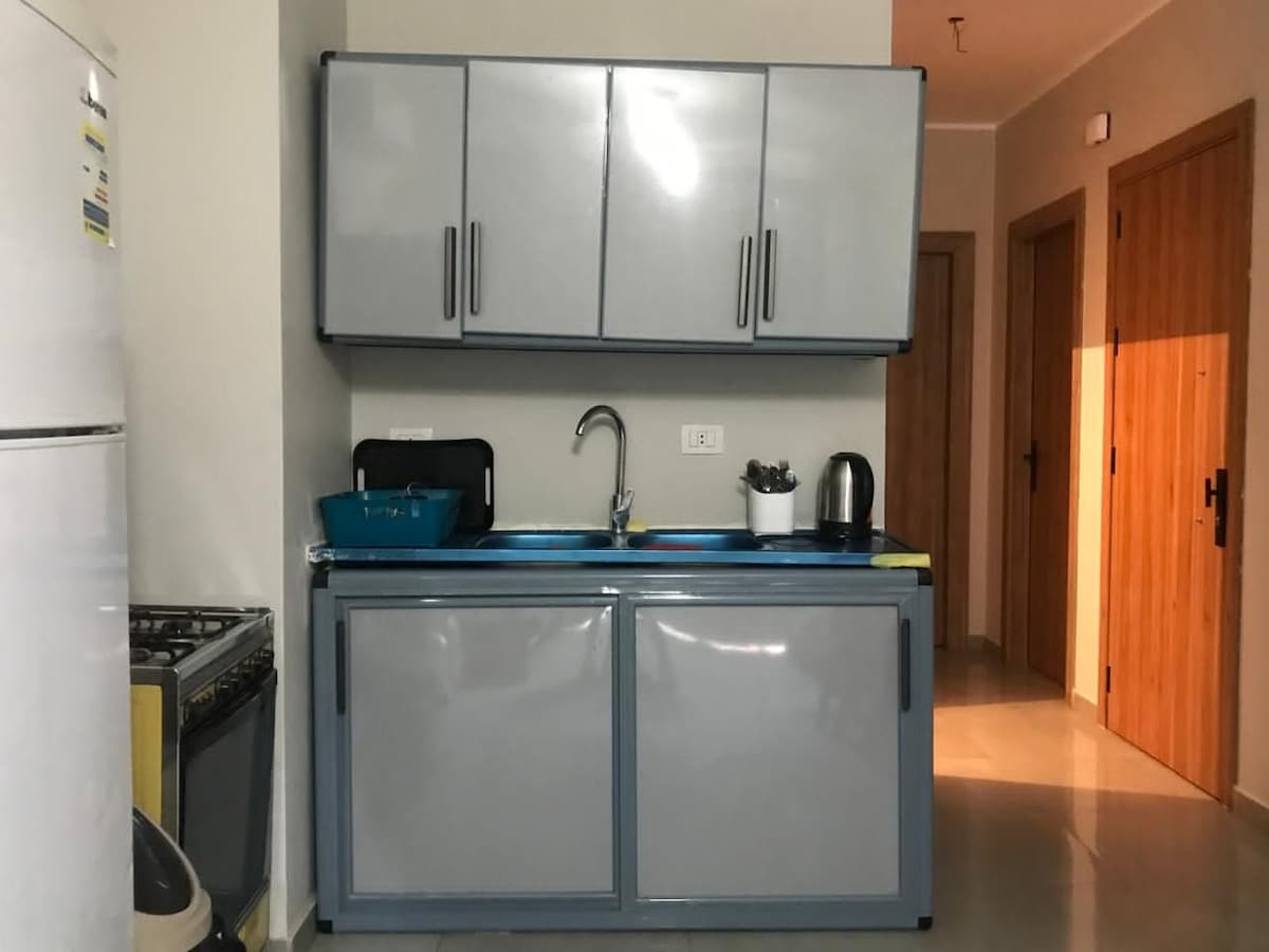 Modern 2-bedroom apartment inside Elite Tulip Hotel, Ain Sokhna. Fully equipped with kitchen, Wi-Fi, A/C, and quiet backside view. Sleeps up to 4 guests. Free access to private sandy beach, swimming pools, and hotel lobby. Paid services: restaurants, laundry, and gym. Ideal place for relaxation by the sea with the comforts of home and the perks of a resort.