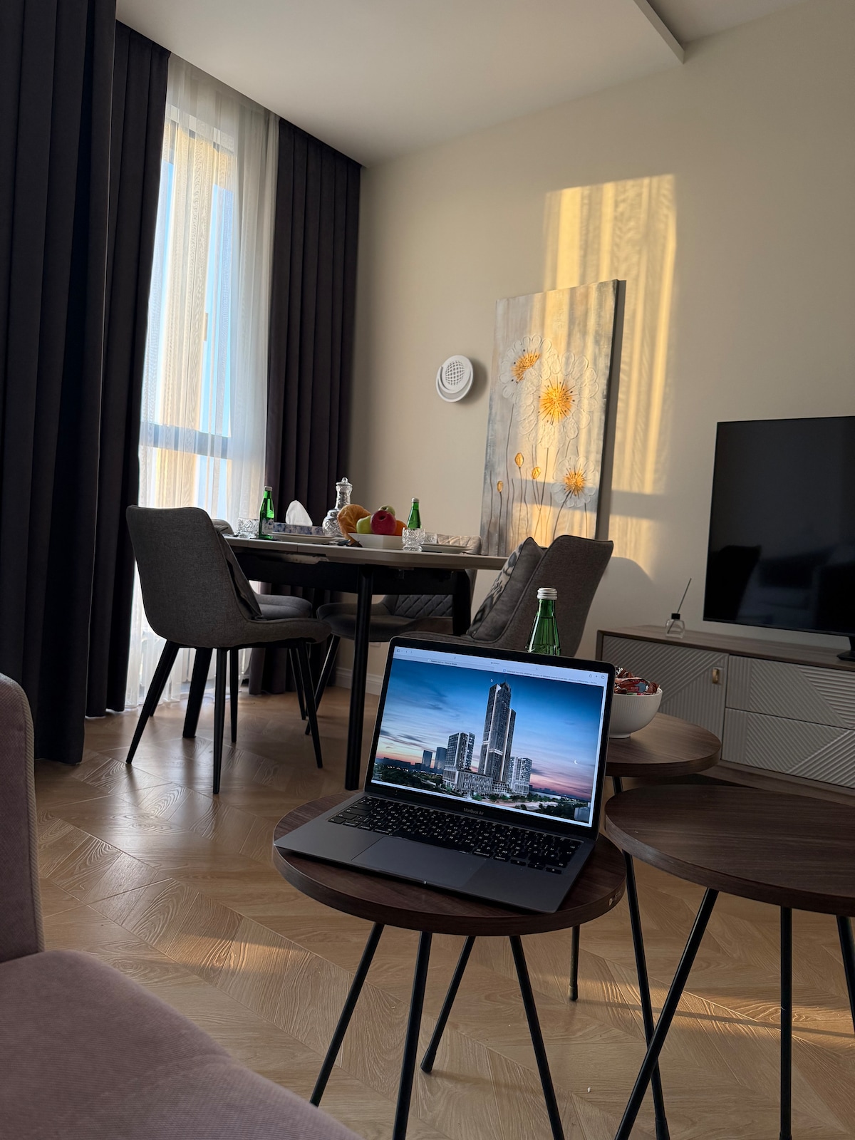 Наслаждайтесь комфортом и стильной атмосферой в сердце Ташкента. Эта современная 1-комнатная квартира с панорамным видом расположена в престижном комплексе NRG U-Tower. Вас ждёт дизайнерский интерьер, просторная кухня-гостиная, уютная спальня и балкон с лаунж-зоной. Идеальна для путешественников, командировок и романтических поездок. Wi-Fi, Netflix, оборудованная кухня, стиральная машина и кондиционер — всё для комфорта. До центра города, Tashkent City Mall и деловых кварталов — 15 минут.