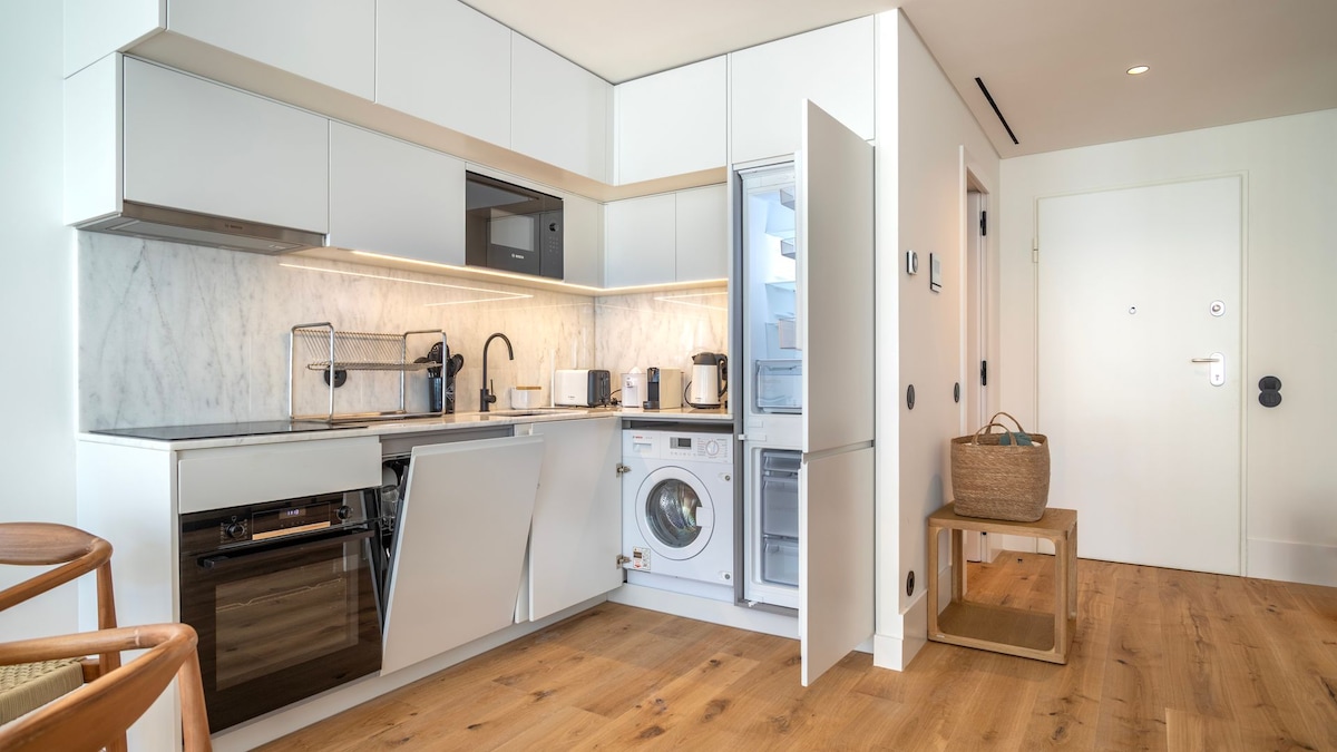 Located on the second floor, this apartment for up to four guests features air conditioning, a washer-dryer combo, a meditation room/mini gym, and a front-facing balcony. The lower-floor bedroom opens to the living room via a pocket door. Near Rua de Santa Catarina and Bolhão Market. For guests traveling with little ones, a baby pack is available on request (€25) and includes a cot with linen, high chair, bathtub, baby amenities, and a baby towel.