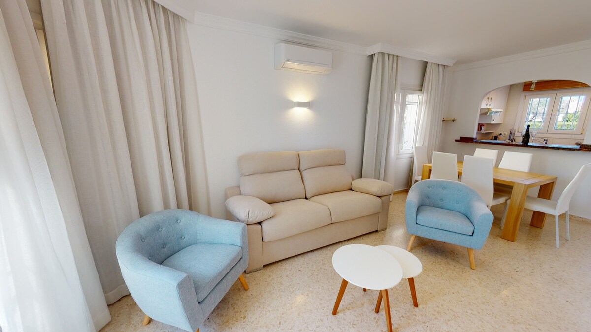 Discover our paradise by the Mediterranean in this charming townhouse with direct ocean views! Sleeping up to 5 people, this place is perfect for families. The townhouse has three cozy bedrooms and a comfortable sofa bed to ensure a pleasant rest for all guests. In addition, two full bathrooms. In the fully equipped kitchen, you can prepare delicious meals while enjoying the incredible views offered by the sea.