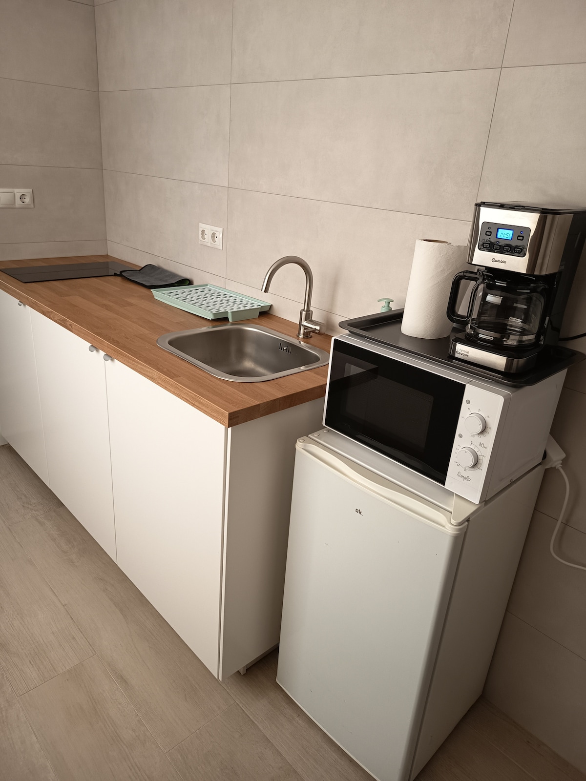Rest in this two-room apartment with its own separate toilets, (2 toilets). It is a ground floor with entrance from the street but interior with a small terrace, from the entrance you access the two separate rooms in which each has its comfortable bed, its coffee maker and refrigerator and 2 bathrooms, it has a small kitchen Ideal for 4 people. It does not have a kitchen but it does have a microwave grill, which is great for short stays. There are many bars and shops nearby.