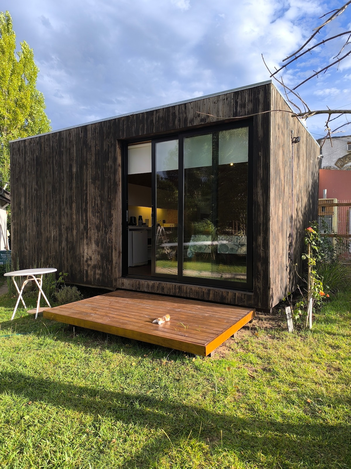 Incredible Concrete Micro House in the middle of the forest, respecting the nature of the place, unique environment with a queen bed, desk table, 2 chairs and WiFi. Bathroom with shower, sink, toilet. Kitchenette with sink, electric kettle, microwave and refrigerator with freezer, it is NOT for cooking. Very bright with the sea 700 meters away and the shopping center 600 meters away. This beautiful house is hidden behind the main house with total privacy and autonomy. Outdoor grill for common use of the place. Welcome!