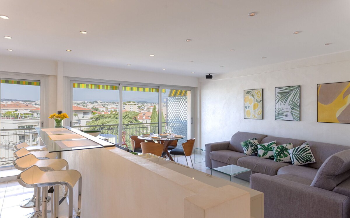 Stylish Duplex with large balcony, incredible city views, and prime location! You'll be in awe of the gorgeous view from this duplex apartment in Cannes, light-filled, loft-like space with a commanding position overlooking the surrounding city. Step outside onto the balcony with your morning coffee or an evening glass of wine, come home each afternoon to such comforts as air conditioning and a washer/dryer and enjoy easy walking access to beaches, the port, and the Palais des Festivals....