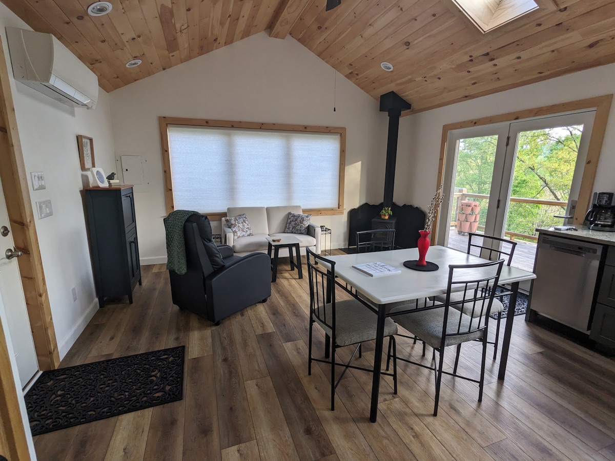 Get ready to unwind in our cozy tiny cabin, just 10 minutes between historic Valle Crucis and quaint downtown Banner Elk. Only 2 miles off "Scenic Byway" US Hwy. 194. Enjoy a quiet retreat on our 100 yr-old farm. A covered porch to watch sunrises and sunsets. Hike. Bike. Read. Write. Full kitchen, Private bedroom with luxury bedding, and a relaxing living area to rest after a busy day. Close to wineries, skiing, area attractions. Gas grill, Fire Pit, Picnic Table. Come enjoy the simple life.