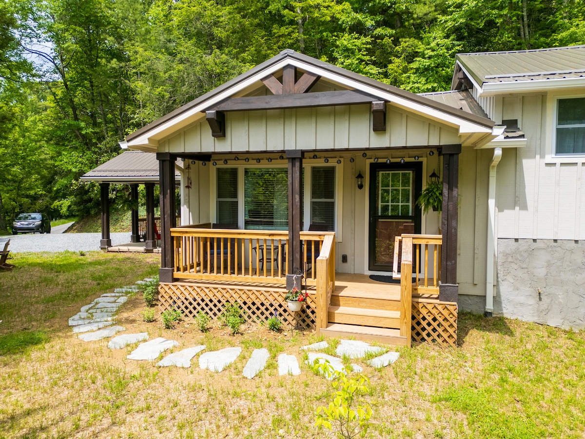Enter an enchanting mix of rustic nostalgia and modern comforts within a harmonious aesthetic. Take in the river from the porch swing or hot tub, cozy up to the stone fireplace or outside fire pit. Fishing & skiing are close: 15 miles to Sugar or Beech Mountains. You have full access to both cabins: the main house hosts the peaceful queen bedroom, bunk room, loft, main bathroom & shower (no tub), kitchen and dining room. The smaller separate cottage hosts the relaxing king bedroom, private bath, and laundry. If you have small children, please be aware that our property has some steep slopes. The main house contains a master queen bedroom with private french doors onto the deck, a bunkroom to sleep 3, a vaulted greatroom with huge stone fireplace, comfy kitchen with all the modern amenities, a stone sunroom with dining room and reading nook, double vanity bathroom with sunken shower, and a loft retreat for 65" 4K TV and games! A guest house (included in your reservation) right behind contains a master king bedroom, private bath, and laundry room...and a charming porch swing overlooking the river. Family adventures, romantic getaways, meditative retreats. Envision walking through the woods up behind the cabin, maybe even finding the hidden gazebo! The large deck makes for a great space to sit and look at the scenic hills and water just below. Imagine the cows mooing and the reclusive bald eagle flying overhead. The mountains are just what you need! In the winter, we recommend a 4WD vehicle to get up the driveway in case of snow! Once you're all settled in, you can begin planning your adventures in the High Country...from shopping excursions in quaint Blowing Rock to epic hikes on the Appalachian Trail to zip-lining and ropes courses. From fine dining to fly fishing to river tubing to snow skiing, the choices are endless. Or just throw some logs on the fire, light up the grill, and hole up in your own luxurious retreat where all you can hear is the geese landing on the river and the cows mooing in the meadow. It's a magical place, and we'd love to share it with you! The area is full of beautiful hiking on the Appalachian Trail, exciting zip-lining and ropes courses, and relaxing fly-fishing spots and river tubing. Head to the quaint towns nearby to sample tasty local foods and brews, and browse the antique shops. Once you book with us, we'll send you our thorough visitors guide to the area for lots of specific recommendations. Completely renovated in the summer of 2018, the Briar Patch brings an enchanting mix of rustic nostagia and modern comfort in a whimsical, one-of-a-kind getaway you won't want to leave!