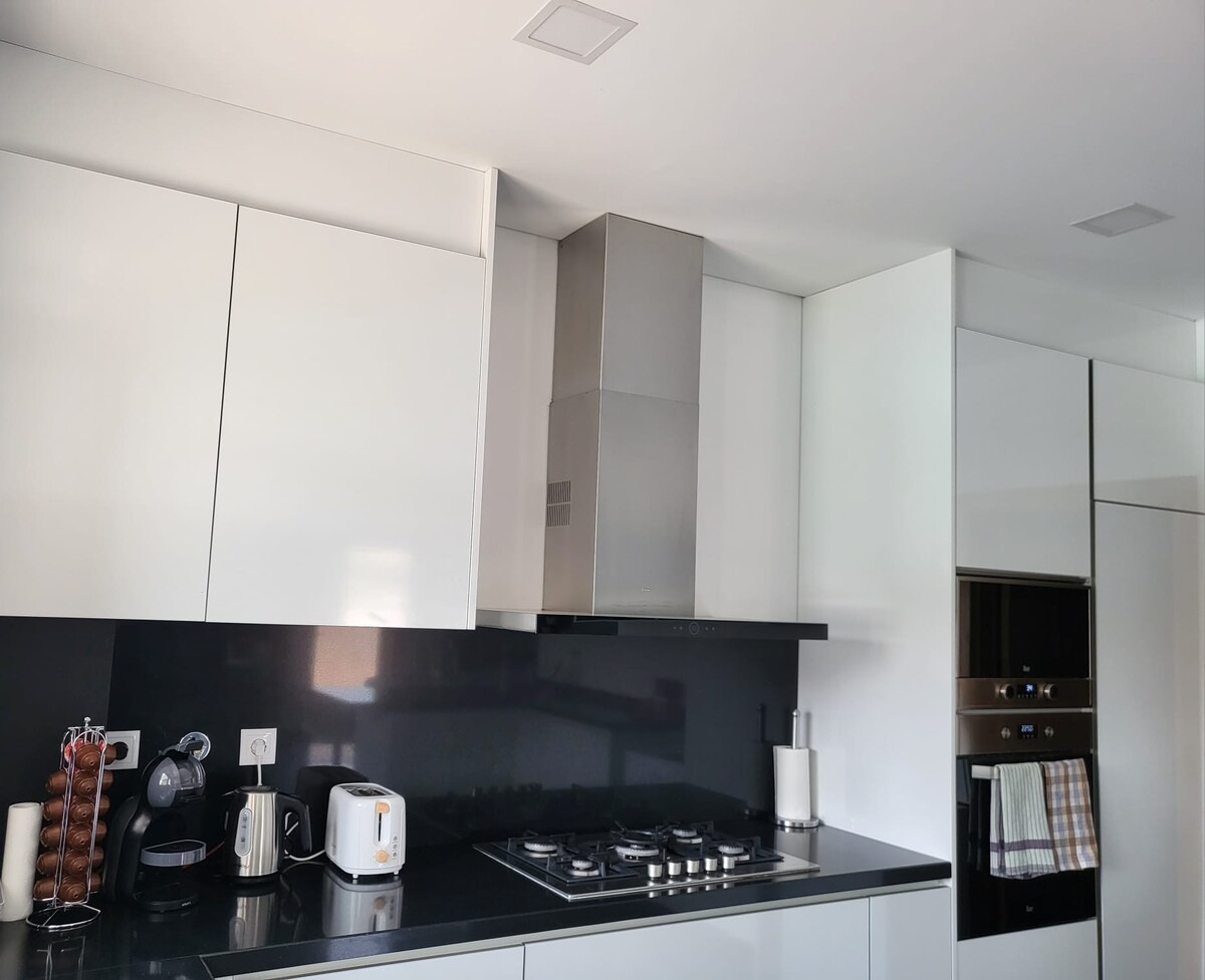 The apartment is central and has easy access to the city center (~5min walking). The building has private garden where is possible to park the car and/or do a barbecue. The apartment has one balcony to the front of the building and another one to the back. It also has AC in all main areas - bedrooms, living room and kitchen. The kitchen is fully equipped including dishes washing machine, wash and drier clothes machine, fridge, microwaves, coffee machine, etc.