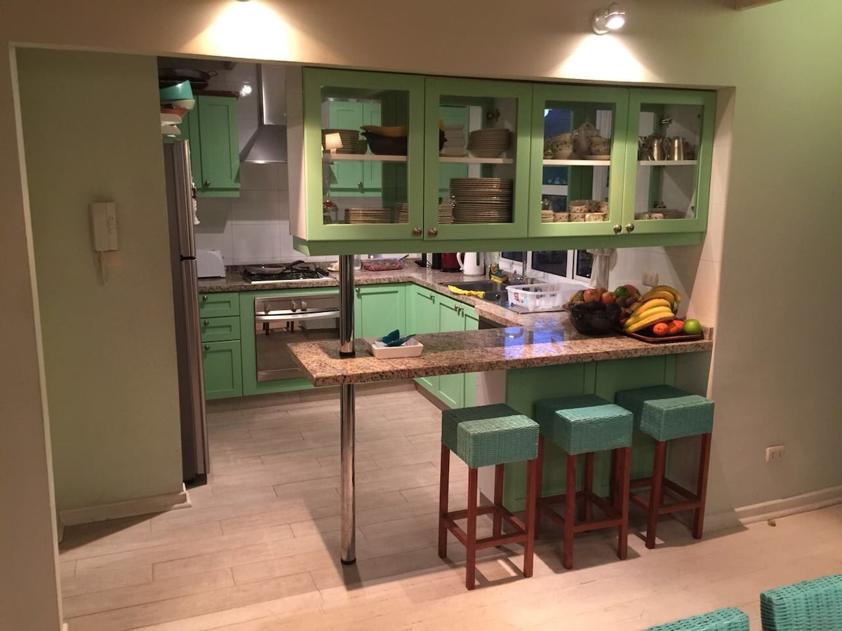 Beautiful front row house, facing Aguas Blancas de Maitencillo beach. It has two bedrooms and a bathroom, a cozy living room with a built-in kitchen. A crib is available, if needed. To get there you must leave the car in the parking lot below and climb stairs until you reach a true oasis where you hear the sound of the waves and which has a beautiful view of the beach, wide and open. A perfect place to go on vacation or escape from the routine.