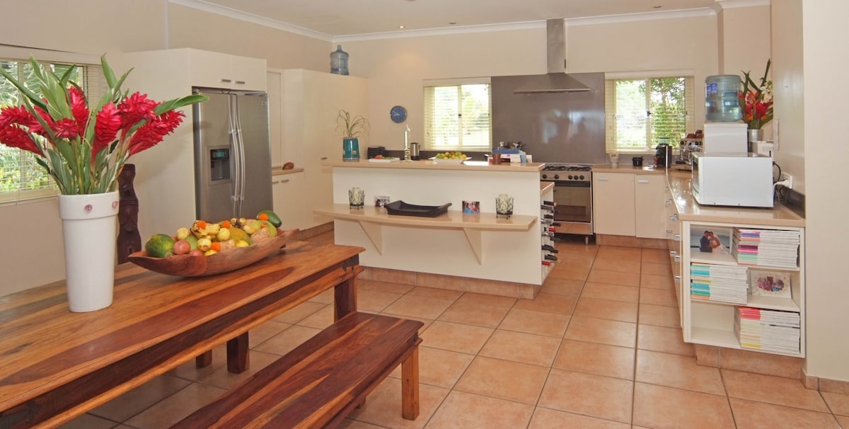 This is your tropical-designed villa on a sheltered South Pacific Island beach that is an easy 30 minute drive to the international airport and walking distance to multiple other ocean coves and beaches. The villa features beautiful raw timbers, lime washed walls, local art, a selection of hand made and antique furniture, a fully openable kitchen and dining area, a wide hammock friendly decking with a framed view of the Pacific Ocean, indoor and outdoor showers, and lush gardens.