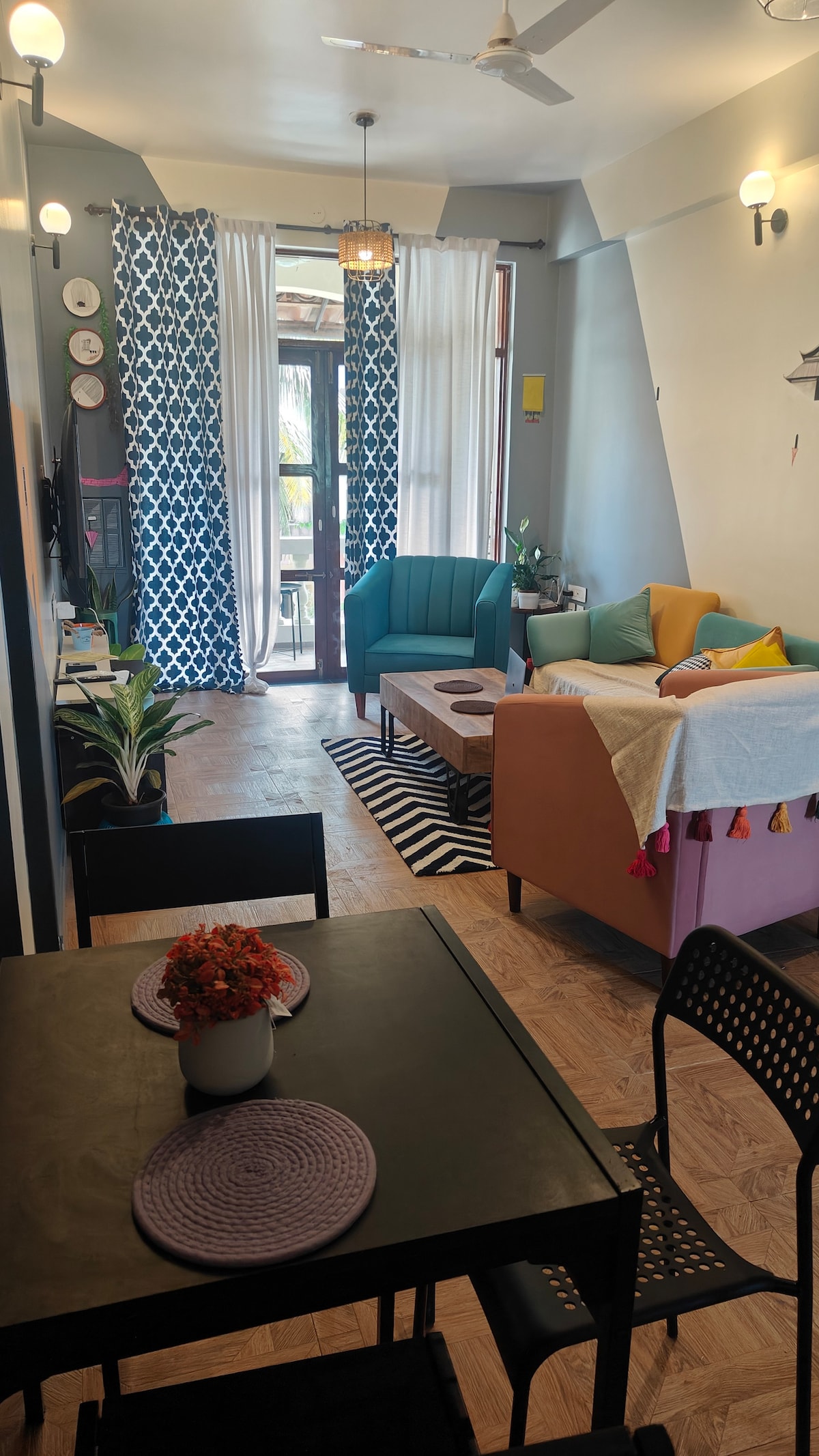 Fully furnished 1-bedroom apartment just a 7-minute walk from Colva Beach. This is small, cute, and cozy home is perfect for couples or families looking to relax and enjoy quality time in a serene nearby beach setting, cozy space with Wi-Fi, a fully equipped kitchen, and a balcony. Located in a secure complex with a modern gym. Shops, restaurants, nightclubs, and rentals all within 200 meters.
