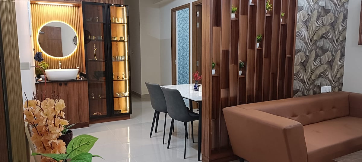 A fully furnished one-bedroom apartment situated in the heart of the city at Sreedhanya Vantage Point, close to the railway station and 1.5 km to famous Sre Padmanabha temple. Enjoying an excellent view and neighborhood. AMENITIES -Access card entry -Reception -A/V board room -Association hall -Swimming pool -Valet parking -Wifi enabled -Health club -Rooftop Cafeteria -Driver’s room -Intercom facility