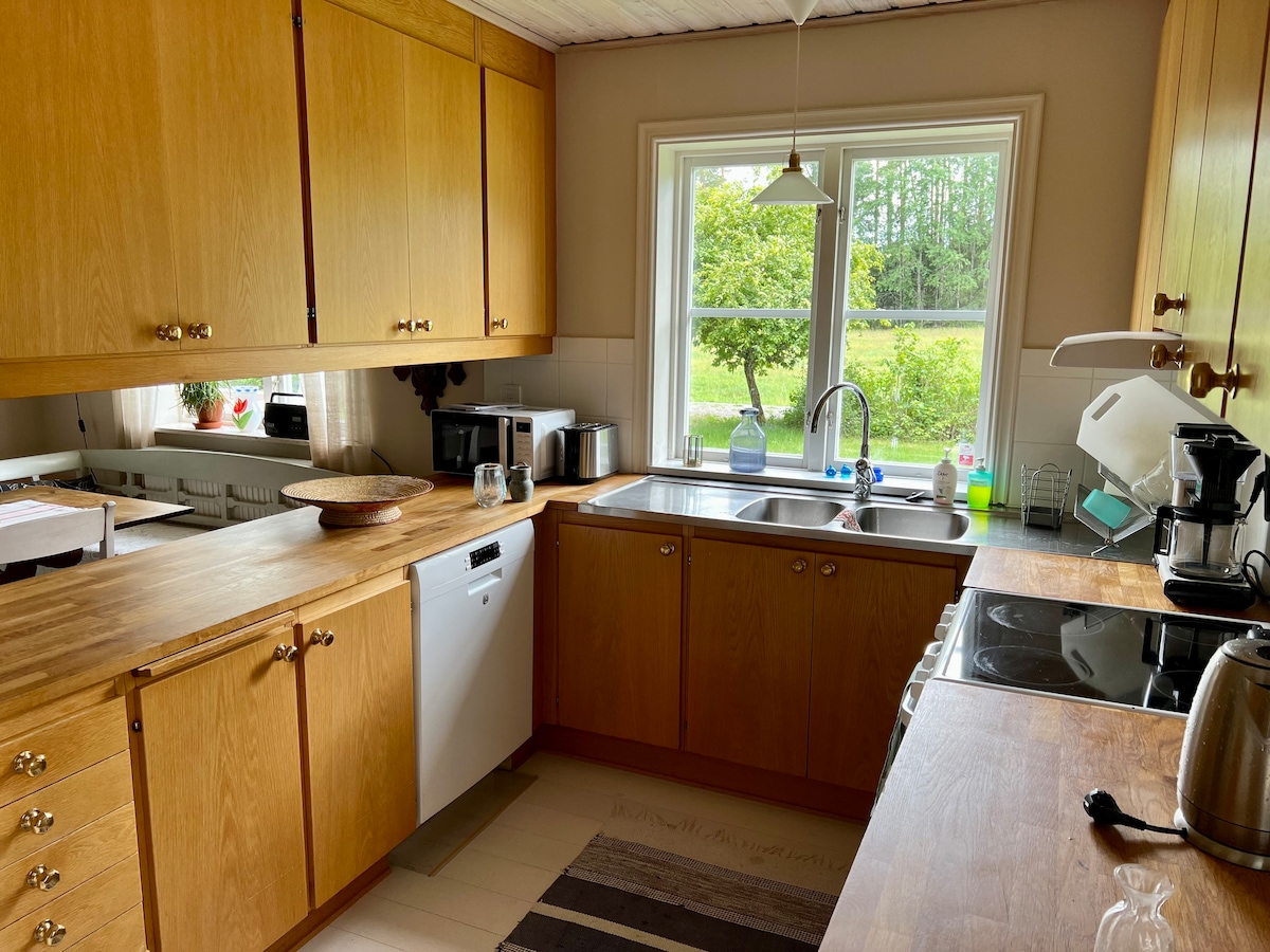 Our cozy cottage is beautifully situated on our small farm in the middle of the Småland forest. The forest is located right around the corner for wonderful forest excursions. Next to the house there is a pond where you can swim. Cozy beach with sun loungers that you can enjoy in nice weather. The farm is only 10 minutes from the beautiful lake Åsnen and only 25 minutes to Växjö or Älmhult.
