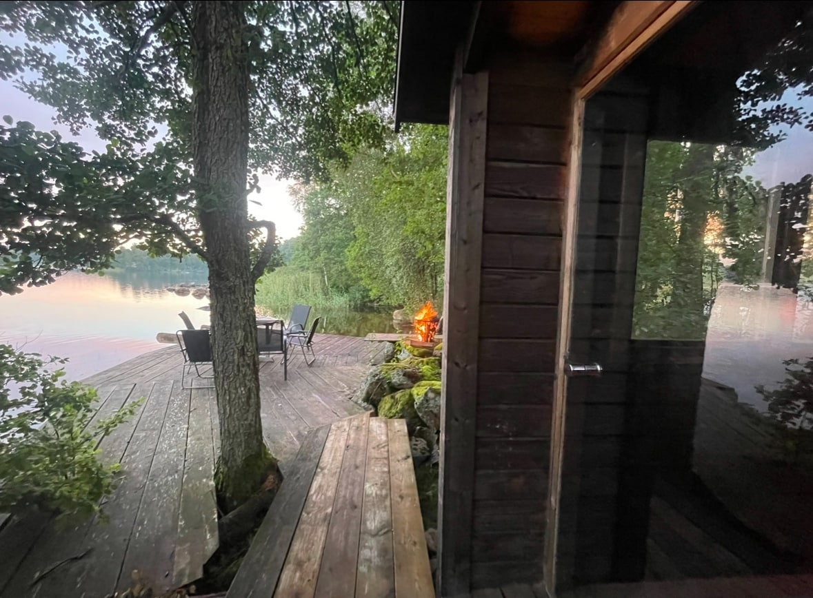 The accommodation offers a unique experience of relaxation by the lakeside, featuring a private sauna, hot tub, and a tranquil relaxation area right by the water with its own jetty. Just a few steps from the sauna, you can take a refreshing dip in the clear lake and then unwind in the warm jacuzzi. Simsjön is a scenic and peaceful spot, perfect for escaping everyday stress and spending quality time together. You can borrow your own boat to explore the lake and enjoy fishing 🎣🌿