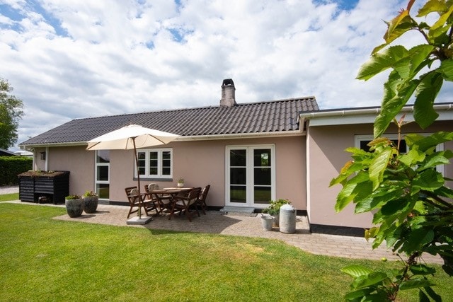 Lovely new fully furnished cottage 100 meters from kid-friendly Hvidbjerg beach and 40 km from Legoland! New wooden floors and lots of cozy details with a fireplace in the living room. Nice new bathroom with floor heating, washing machine, new kitchen with dishwasher. 2 bedrooms (in each 1 double bed) and a living room where 2 people can sleep on the sofa bed (living room but not heated). TV and fast Wifi are included. Lovely enclosed garden for barbecue.