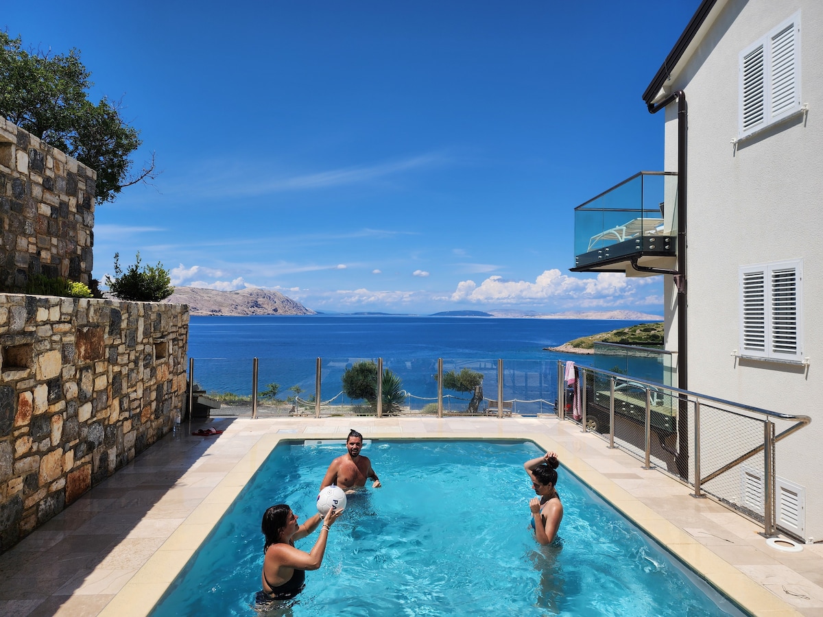 Our Sunset Oasis apartment is located in the small village of Prizna on the Kvarner Bay. The apartment is located on the first line of the Adriatic Sea. The lagoon is directly accessible via its own staircase access. The apartment was newly built in 2017 and furnished to a high standard. The 15 m² terrace offers a romantic sunset. It is equipped with sun loungers, chairs and a terrace table. The islands PAK (3 km) and RAB (15 km) can be reached quickly.
