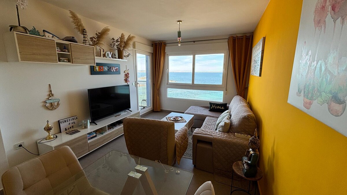 Increíble apartamento con impresionantes vistas al mar mediterráneo, ubicado en una de las zonas mas tranquilas de la Manga, Murcia. Este estupendo apartamento se encuentra en la urbanización Veneziola Golf 2, la cual cuenta con todas las comodidades para que puedas disfrutar de unas relajantes vacaciones en familia. Cuanta con dos grandes piscinas con vistas al mar, zonas ajardinadas, acceso directo a la playa, spa con jacuzzi, sauna, baño turco, tumbonas calientes, etc. Te esperamos!!
