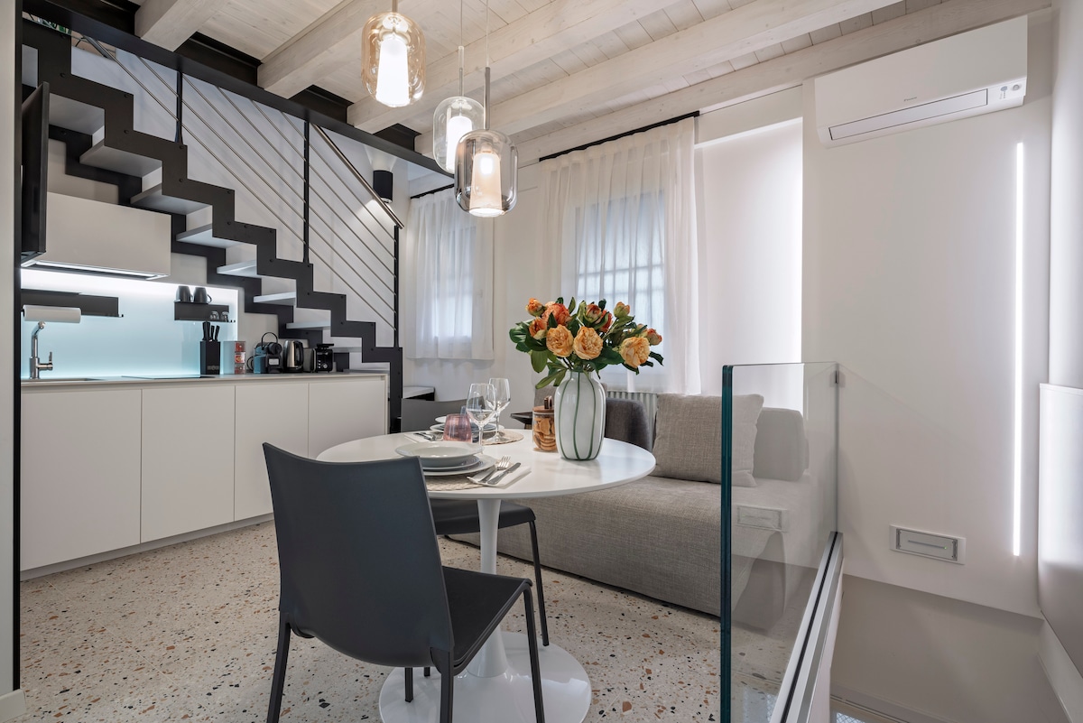 This two-level luxurious apartment( 50mq) has just been restored elegant, bright, comfortable. Is characterized by two balconies that make it very bright .Perfect for a couple, the apartment is fully equipped with every comfort. The apartment is silent and in a quiet location just outside the tourist flow although it is located in one of the most fascinating and lively areas of Venice: Cannaregio